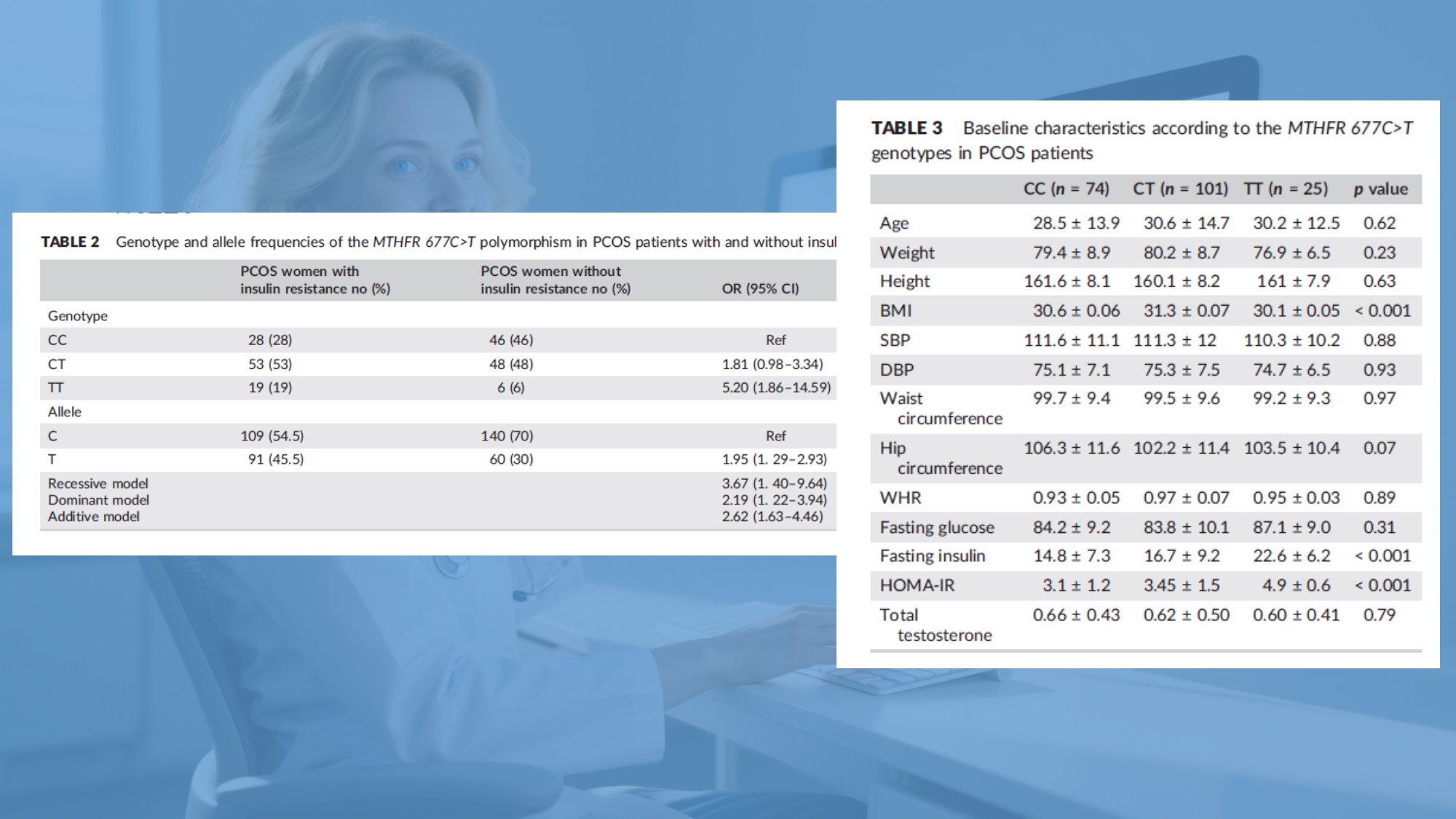 Yazarlar açıkça şunu belirtmişlerdir ki, PKOS'lu Mısırlı kadınlarda *MTHFR* 677C>T polimorfizmi insülin için bağımsız bir biyobelirteçtir direnç. Azalan enzim aktivitesi homosisteinin yükselmesine neden olur, bu da dürtmeyi tetikler metabolizmanın olumsuz bir yola doğru gitmesi.